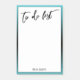 This simple design features a white background surrounded by an aqua border that can be changed to any colour you like. The background has been overlaid with a black gradient image that creates an ombre effect. I've used a casual handwritten font to create a graphic that reads "to do list", and angled it quite large at the top. Your name appears at the bottom in an all caps, serif font that can be changed if you wish.