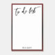 This simple design features a white background surrounded by a dark burgundy red border that can be changed to any colour you like. The background has been overlaid with a black gradient image that creates an ombre effect. I've used a casual handwritten font to create a graphic that reads "to do list", and angled it quite large at the top. Your name appears at the bottom in an all caps, serif font that can be changed if you wish.
