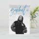 Modern graduation announcement card featuring your graduate's favourite photo on the front with "Graduate" in a blue handwritten script. Personalise the front of the announcement by adding the graduate's name, school name, and graduation year. The trendy graduation announcement reverses to display an additional 3 photos with space for text such as future plans, graduation details, party details, etc. The 4 photo graduation announcement is perfect for both high school and college graduates.