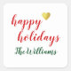 handwritten happy holidays + family name, xmas square sticker