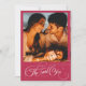 Featuring the 2023 colour of the year, Viva Magenta, this handwritten minimalist, modern, engagement invitation with custom names, is great for your viva magenta themed engagement. The entire text is fully customisable: names location, time, address, RSVP. You can also customise the background colour and the back photo of the couple. Available in different colours and formats. Choose this elegant and simple engagement invitation, add your info for RSVP, customise all the needed details, and you can order.