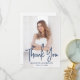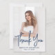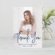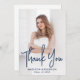 Send friends and family a heartfelt thank you message with our modern graduation photo thank you cards! The card features the graduate's full-bleed vertical photo with "Thank You" displayed in a handwritten navy script overlay. Personalise the photo graduation thank you card with the graduate's name and graduation year. The card reverses to display your thank you message in black lettering. This modern graduation thank you card is perfect for high school and college graduations!
