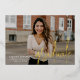Modern graduation announcement featuring your horizontal photo on the front with "Graduate" displayed in a handwritten gold foil script overlay. Personalize the front of the photo graduation announcement with the graduate's name, school name, and graduation year. The foil graduation announcement reverses to display an additional photo with space provided to include the graduate's future plans, graduation details, etc. The 2 photo graduation announcement is perfect for both high school and college graduations!