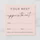 Modern, light blush pink, simple yet elegant appointment cards with template fields for your contact information and logo on the back. Fonts, font colours and background colour can be adjusted with the customisation tool. Follow us on Instagram: @business.perfectlycustom and Facebook: @businessstationery for business related products, news and sales.