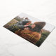 Festive Hanukkah holiday photo card features your favourite horizontal or landscape orientated photo in full bleed, with "Happy Hanukkah" overlaid in gold foil handwritten cursive script typography. Personalise the front of the card with your names and the year.