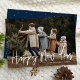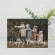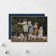 Modern holiday photo cards featuring your horizontal photo with "Happy New Year" displayed in a white handwritten script. Personalize the photo New Year card with your family name and the year. The single photo holiday card reverses to display a navy background with subtle white dots.
