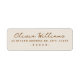 Ivory or light tan brown return address labels with your name in a handwritten style font and address and zip code below. You can change the background and font colour to any custom colour with the customisation tool.