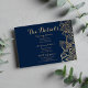 Handwritten script navy blue gold mandala details enclosure card