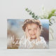 Handwritten Script Overlay Happy Thanksgiving Holiday Card | Send Thanksgiving greetings to family and friends with this customisable photo flat card. It features white modern typography and handwritten lettering. You can customise the back of the card by adding any photo or image that you want.