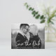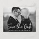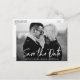 Trendy Modern Handwritten Script Save The Date Engagement Announcement Black and White Photo Postcard