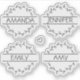 Set of four cute custom name stickers with a greenery element. You can order as many sheets of name stickers decals as you need. All names on the stickers can be easily transformed into another name of your choice or any other text. It is also possible to change font's and floral element's colour, just click on "Customise further". It's a great way to mark your Wedding, Bridal Shower, Bachelorette Party or any other event gifts or favours with a personal touch.
