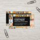 Design features watercolor background of tools wall storage in sophisticate bright warm yellow and natural tones. Flexible and fully customisable. This delicate construction business card set is perfect for your construction, handyman service business, plumbing business, home builder, real estate or wood working business.