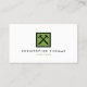 A logo of intersecting hammers in a green box is combined with your name or business name for a professional aesthetic on this business card template designed for handyman, carpenters, construction companies, etc. © 1201AM CREATIVE