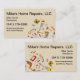 Professional handyman services business card design with image of a handyman and hardware tools in the background and simple layout designed to be customised online. Created for the handyman, remodeling, or home repairs. The design is printed on both sides and you can use the back to put your text in a different second language if you would like to.