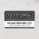 At the top is an array of silver handyman tools icon which can represent some of the services that you offer e.g. the hammer set can represent carpentry-remodeling, the pair of hand drills home repairs, the brushes for painting-interior design, the leaking pipes for plumbing works and the trowel-fork for gardening or landscaping. Their usage is left to your own interpretation. Inside the white layer is your business name "HOME REPAIRS CO" which you can change and the contact details.