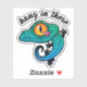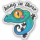 Colourful cartoon gecko licking his eyeball with the phrase Hang In There. Keywords: lizard, eye, animal, cute, cartoon, gecko, reptile, tongue, inspiration, inspirational, motivation, motivational, help, advice, hang