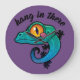 Colourful cartoon gecko licking his eyeball with the phrase Hang In There. Keywords: lizard, eye, animal, cute, cartoon, gecko, reptile, tongue, inspiration, inspirational, motivation, motivational, help, advice, hang
