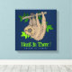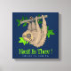 A cute drawing of a brown sloth clinging to a branch with leaves and hanging upside down. Written underneath it says hang in there, friday is coming.