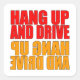 Hang Up And Drive cell phone slogan, in red safety letters and a reversed, mirror image in orange. Be safe on the road, make your car a no cell phone zone and watch the traffic.