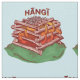 An illustration of a hangi pit being prepared for cooking kai. A large fire heating rocks. These will be buried along with damp sacks to steam food. Hangi is a traditional form of cooking in Aotearoa New Zealand.