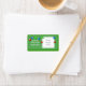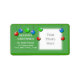 A green holiday photo label with my design of red, blue and green tree ornaments.