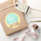 Hanging lightbulb snow globe blue yellow unique classic round sticker