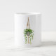 A boho-chic mug featuring a line drawing of a hanging macrame plant holder. A cozy, stylish gift for plant lovers and modern hippies.