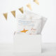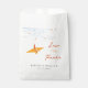 Modern Origami Orange Paper Crane Hanging On Sky Blue Branches With Double Monograms Against A White Background Asian Wedding Favour Bag.