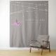 This modern zen wedding photo backdrop photo booth tapestry design features an origami purple paper crane hanging from stylish minimalist strings of fairy lights against a dark grey background.