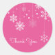 A set of pretty pink round stickers with lovely hanging snowflakes, with the words "Thank You" at the bottom. The words are fully customisable!