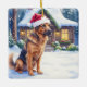 Hanoverian Scenthound Snowy Forest Cabin Santa Hat Ceramic Ornament