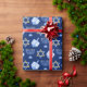 Beautiful Hanukkah wrapping paper in pretty blue with a cool pattern of Judaism star, dreidel for fun Chanukah games, and the Jewish menorah for the holiday.