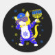 Hanukkah Dabbing Cat Sunglasses Holding Menorah Classic Round Sticker