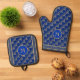 Happy Hanukkah Festival of lights party decoration beauty Jewish holiday Monogram and gold ornaments design. Vintage Jewish Holiday Chanukkah blue background with traditional Chanukah decorative symbols decor - Gold hanukkiah - menorah, candles, star of David and glowing lights wallpaper gold hanukkiah, wooden dreidels (spinning top toy) with Hebrew letters, donuts, navy blue pattern. Hanukkah festival of lights Family, Friends, Kids event decoration, gifts idea. Jerusalem, Israel. Home & Living > Kitchen & Dining > Table & Kitchen Linens > Oven Mitts & Pot Holders Trendy Design with text template. Personalize them by adding name or wishes text. Modern design. Customize