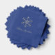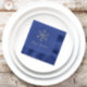 This lovely, elegant look paper napkin is shown in the navy color with silver foil stamping, shown with a Happy Hanukkah snowflake print.