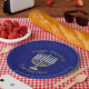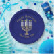 Set an elegant Hanukkah party table with these blue and gold Menorah design paper plates. Easy cleanup and a unique design makes these holiday plates a welcome addition to the dinner table or lunch buffet. Offered exclusively in my online store here on Zazzle, the soft golden Menorah with nine white candles is my original artwork, making these Chanukah plates a unique find. Set on a deep blue faux sparkle background your personalised text in gold tones adds the final custom touch to this Hanukkah party paper plate.