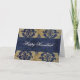Lovely custom Hanukkah greeting card. A pretty blue on tan damask design on the background, with a blue marbled looking centre stripe that has Happy Hanukkah, in white script text. Greeting and signatures inside, with an elegant Star of David decoration. Customise this great holiday card with your own text inside.