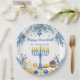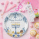 Introducing the “Hanukkah Harmony Plate” – a beautifully designed round paper plate perfect for your Hanukkah celebrations. This plate features a stunning illustration of a golden menorah with all candles lit, surrounded by elegant blue leaves, branches, gold stars, and coins that symbolise prosperity. The text “HAPPY HANUKKAH” is prominently displayed, making this plate an ideal choice for adding a festive touch to your holiday table. Celebrate in style with the “Hanukkah Harmony Plate” and make your gatherings extra special! 🕎✨