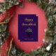 A lovely greeting card for Hanukkah, this design features "Happy Hanukkah" on a lovely purple background. The centre has a menorah with a place to insert your family's name at the bottom. The back continues with the beautiful purple background. There is a message of blessings included. Order yours today!