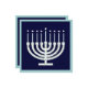 A whimsical menorah in circles of blue and green makes a welcoming invitation to your Hanukkah celebration.