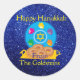 Hanukkah Plate with Dreidels Blue Faux Glitter Classic Round Sticker