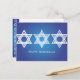This Hanukkah postcard is a great way to send a quick hello without the hassle of an envelope. Pair with a matching stamp and it will look coordinated and thought out. Traditional Hanukkah design with 3 Stars of David (Magen David) going across with a little more design in them for a elegant look.