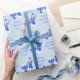 Personalise this cute Hanukkah snowman wrapping paper with the name of the lucky recipient or add your name and Chanukah message for a custom roll just for you. Decorated with cute snowmen and Menorahs in deep shades of blue this gift wrap makes a fun statement. From the traditional eight nights of gifts to a blended family celebrating Chrismukkah, this personalised Hanukkah wrapping paper is one of a kind, created by you.