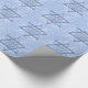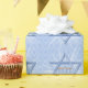 Blue background with light blue swirls with a menorah inside the Star of David to create and elegant gift wrap for Hanukkah.