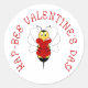 Cute smiling bumble bee with big white wings hugging a heart. Says "Hap-bee Valentine's Day". Great for bumble bee lovers!