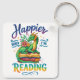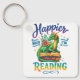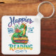 Vibrant, colourful design featuring an open book, colourful dragon, and flowers. The colourful text reads: "Happier when I'm reading". This design is available on a wide variety of products.