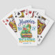 Vibrant, colourful design featuring an open book, colourful dragon, and flowers. The colourful text reads: "Happier when I'm reading". This design is available on a wide variety of products.