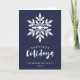 Happiest Holidays White Snowflake Custom Blue Business Holiday Card.