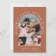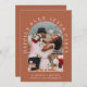 Elegant terracotta elopement or private wedding announcement and reception invitation. The front features your photo in an arch frame and "Happily Ever After Party" in elegant white typography. Add your first names, wedding date and location. On the reverse, personalise your message and add your names in a signature-like script.