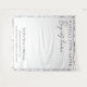 The design is beautifully framed by a crisp double-lined square border and a delicate black and white hand-drawn botanical floral pattern. Below the central message, you can easily personalize the tapestry with the names of the couple, your wedding date, and the venue location to create a one-of-a-kind focal point for your big day. Its clean monochrome aesthetic makes it a versatile choice for modern, garden, or industrial-chic wedding themes.